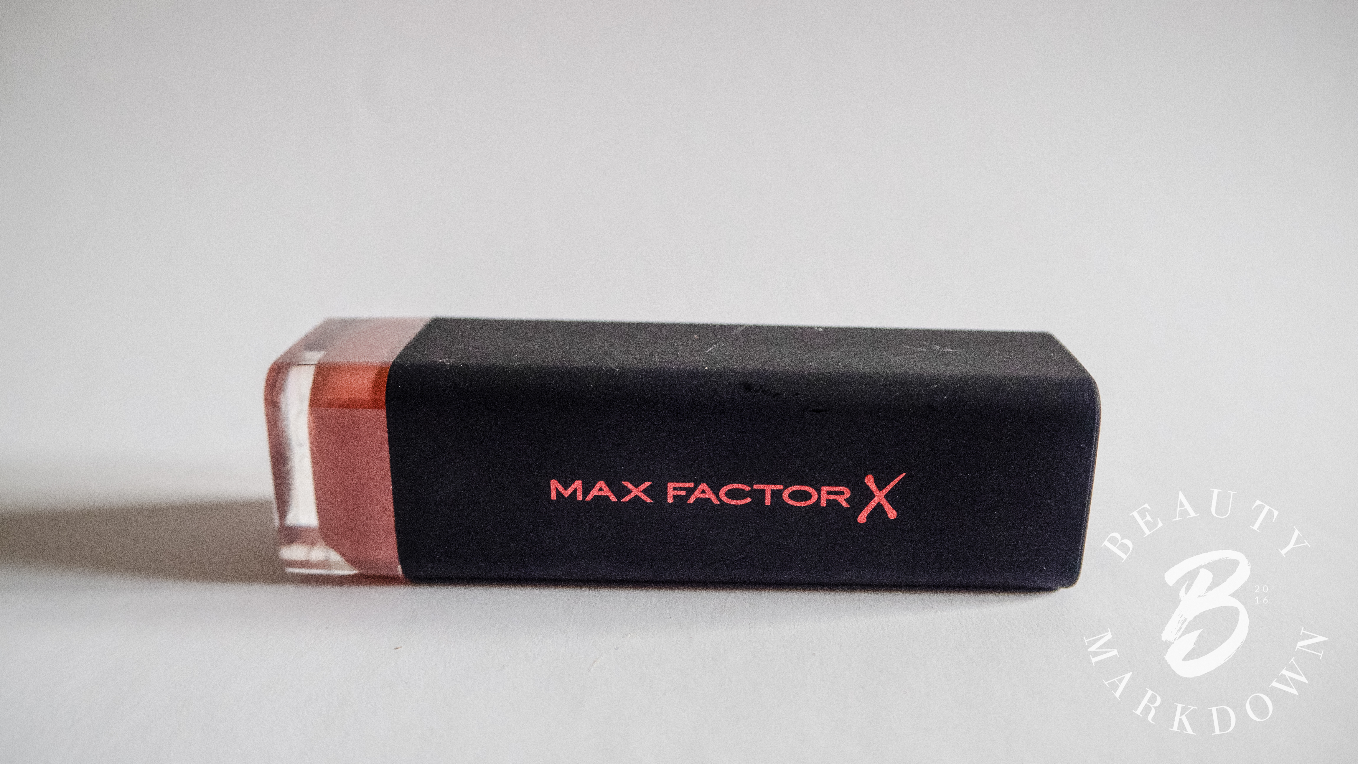 - Max Factor lipstick in 05 “Nude”, a brand new product, hygiene seal intact, used to verify the integrity of the experiment.